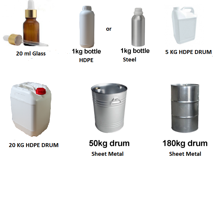 1Lt - 5Lt - 20Lt - 50Lt - 180Lt - 1000Lt (IBC Tank) - 20000Lt (Container)
